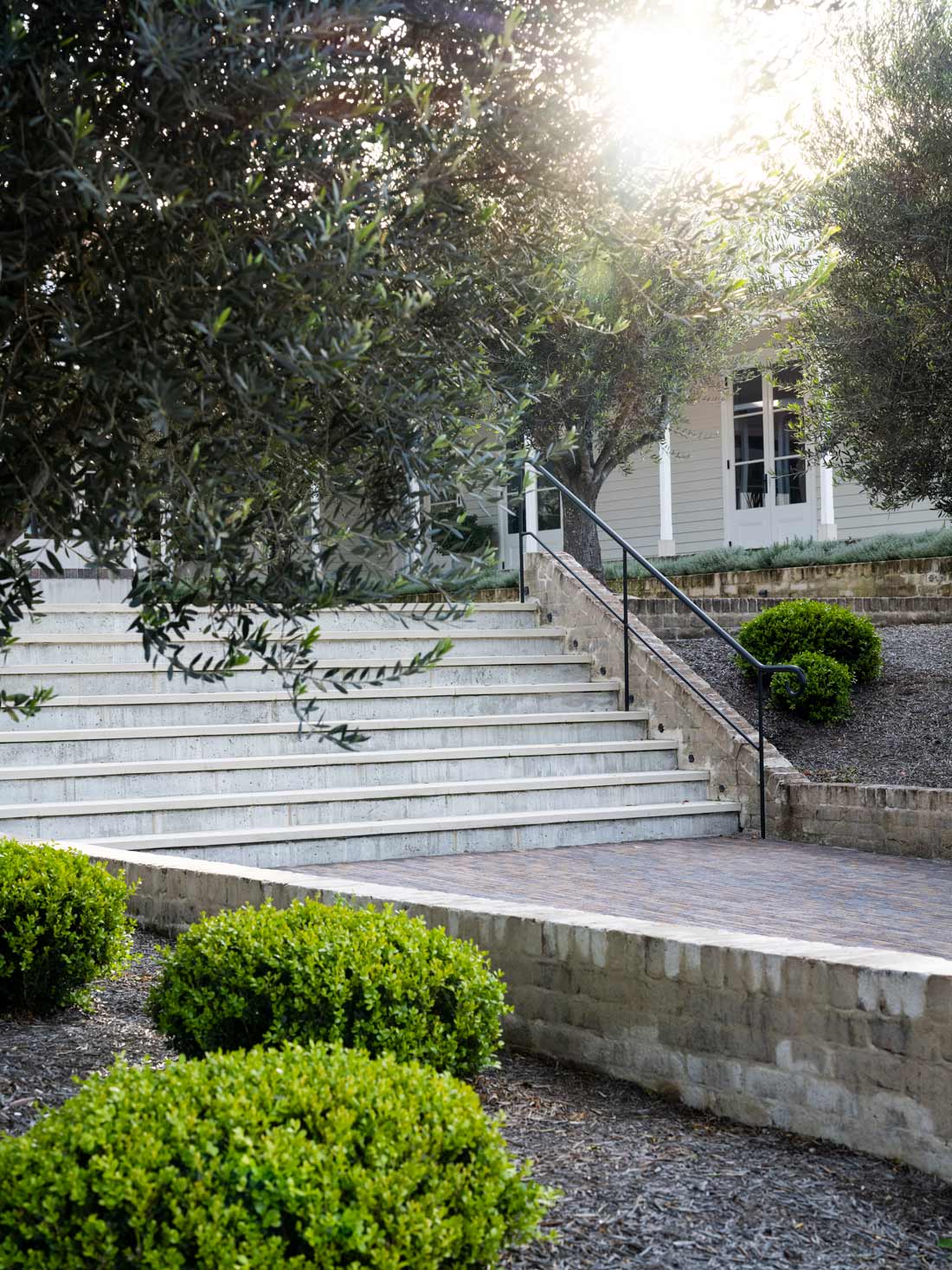 Mount Pleasant Winery has some of the oldest Pinot Noir vines in the Australia and when the famous old Hunter Valley winery was purchased by a new owner we collaborated with Luchetti Krelle Architects to replace the existing gardens and give a visitor to the tasting rooms the welcoming feel that they were walking into a private country home. Constructed by Kyora Landscapes and maintained by both the by vineyard staff and Kyora.